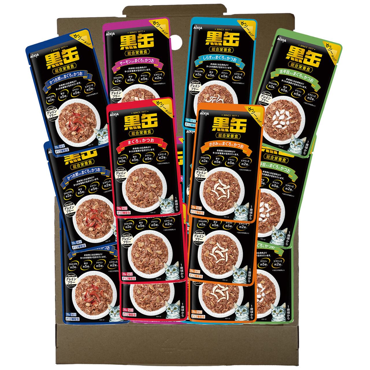 【送料無料】【まとめ買い】アイシア 黒缶 猫 パウチ 70g 6種類×3 合計18個 食べ比べ アソート セット (まぐろとかつお・しらす入り・ささみ入り・かつお節入り・舌平目入り・サーモン入り) グレインフリー おすすめ 総合栄養食 ウェットフード 魚 餌 お腹の調子整える オリゴ糖
