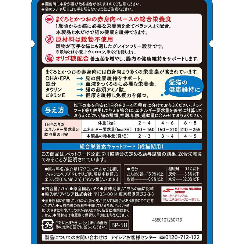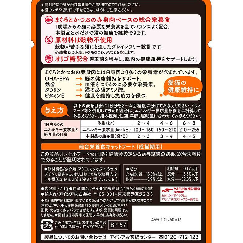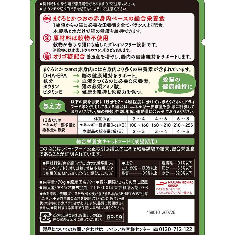 ・70g x 18個入りセット(6種類のフレーバー:まぐろとかつお、しらす入り、ささみ入り、かつお節入り、舌平目入り、サーモン入り)