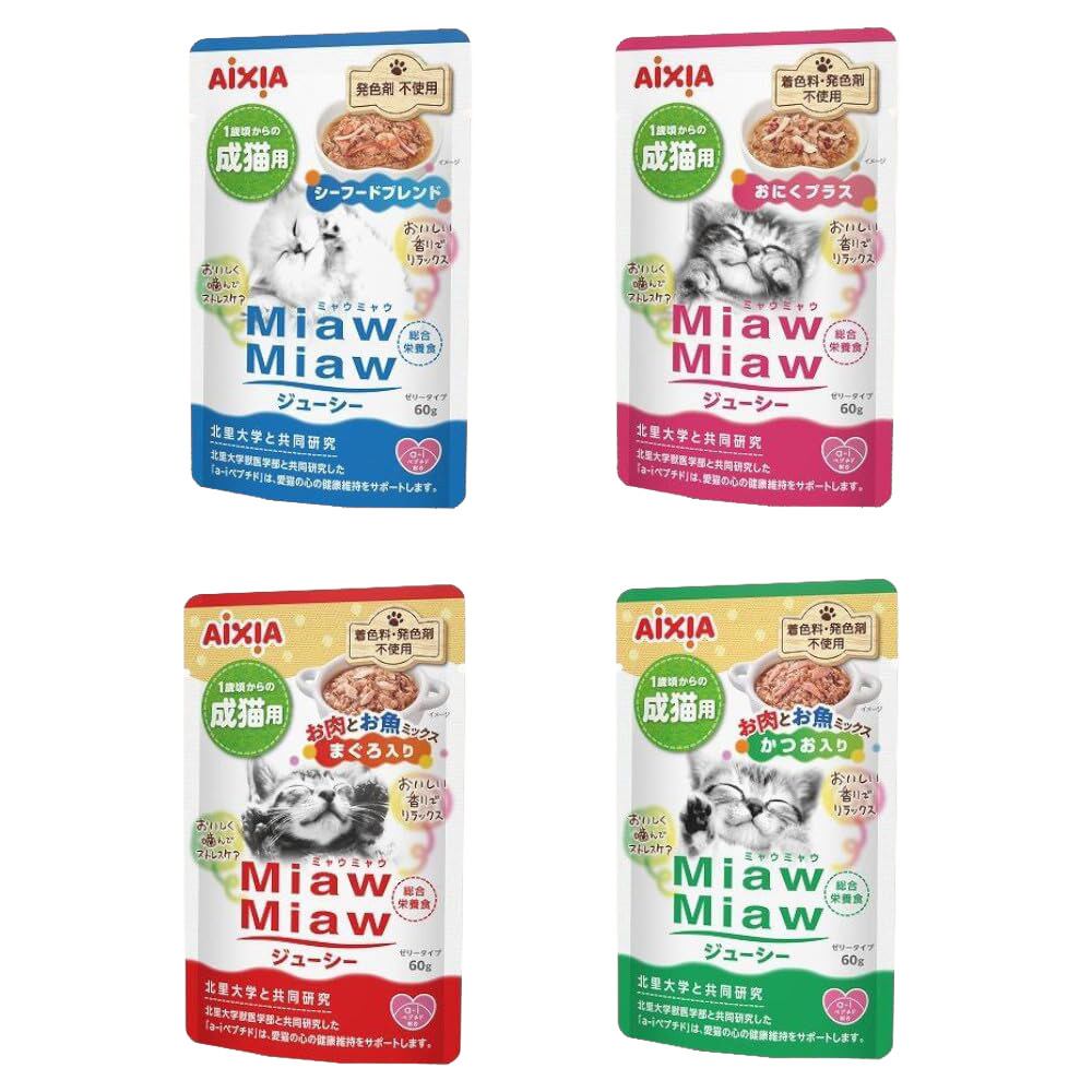【送料無料】【まとめ買い】MiawMiaw (ミャウミャウ) パウチ ジューシー 食べ比べセット 60g (12種×各2袋) 計24袋 総合栄養食 ゼリータイプ 猫 猫フード ウェットフード 着色料・発色剤 不使用 みゃうみゃう キャットフード